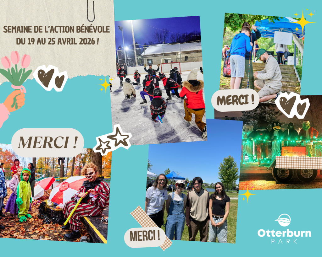 À l’occasion de la Semaine de l’action bénévole, la Ville d’Otterburn Park tient à souligner l’engagement remarquable de toutes les personnes qui s’impliquent bénévolement au sein de la communauté.