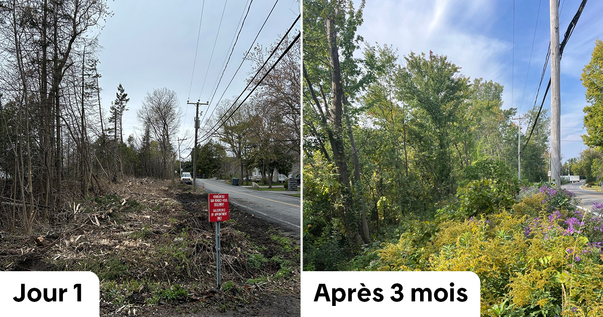 La coupe peut paraître importante à court terme et modifier temporairement l’apparence du boisé. Des photos illustrant l’état des lieux avant et après les travaux sont présentées ci-dessous afin de permettre aux citoyens de mieux visualiser le résultat attendu. Il est fréquent que seuls certains arbustes soient conservés à l’intérieur de l’emprise.
