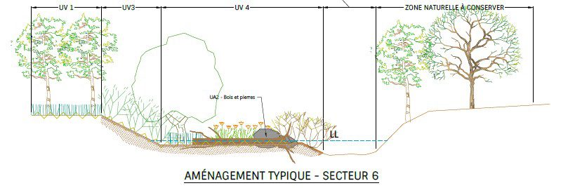 De ce fait, l’ajout d’aménagements et donc la création de biodiversité apportera une meilleure qualité de vie, le maintien de la qualité de l’eau et de l’air, la création de refuges pour la biodiversité et une protection contre les événements climatiques extrêmes.