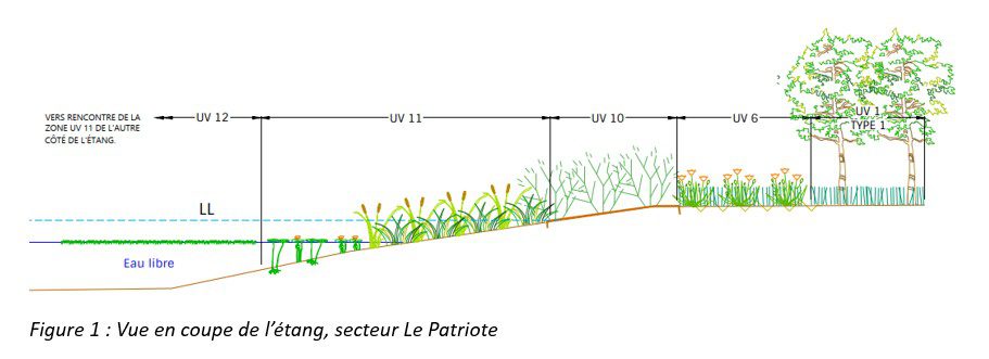 - Reprofilage de la rive et stabilisation du littoral par l’ajout de végétaux;
