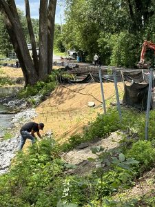 Le reprofilage de la rive consiste à ajuster la forme et la pente des berges du ruisseau afin de rétablir leur stabilité et leur résistance à l’érosion. Cette mesure vise à prévenir l’affaissement des berges, qui peut entraîner une détérioration de la qualité de l’eau et la perte d’habitats naturels. En remodelant les rives de manière appropriée, on favorise également le maintien de la biodiversité et la préservation des écosystèmes riverains.